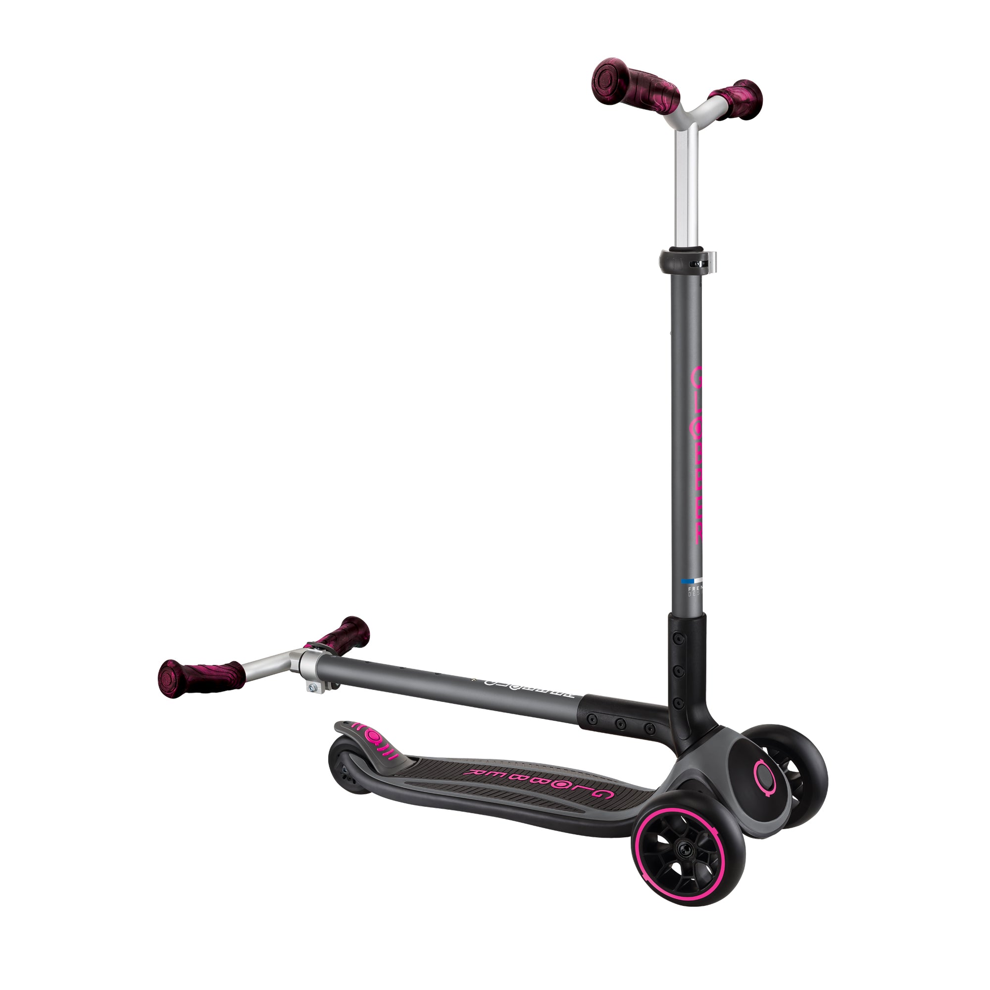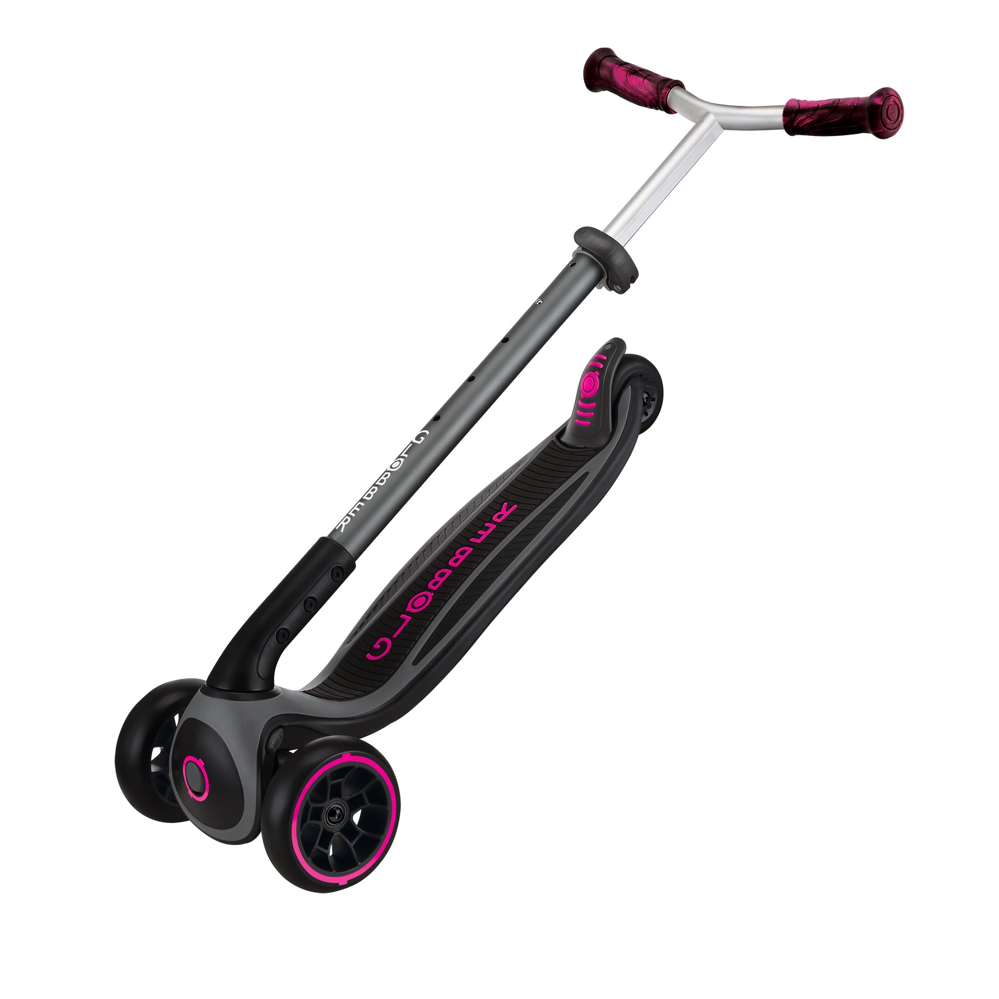 The Master Prime is easy to store and transport with its patented folding system. Push the side button to turn the scooter into trolley mode and explore the world with Globber!