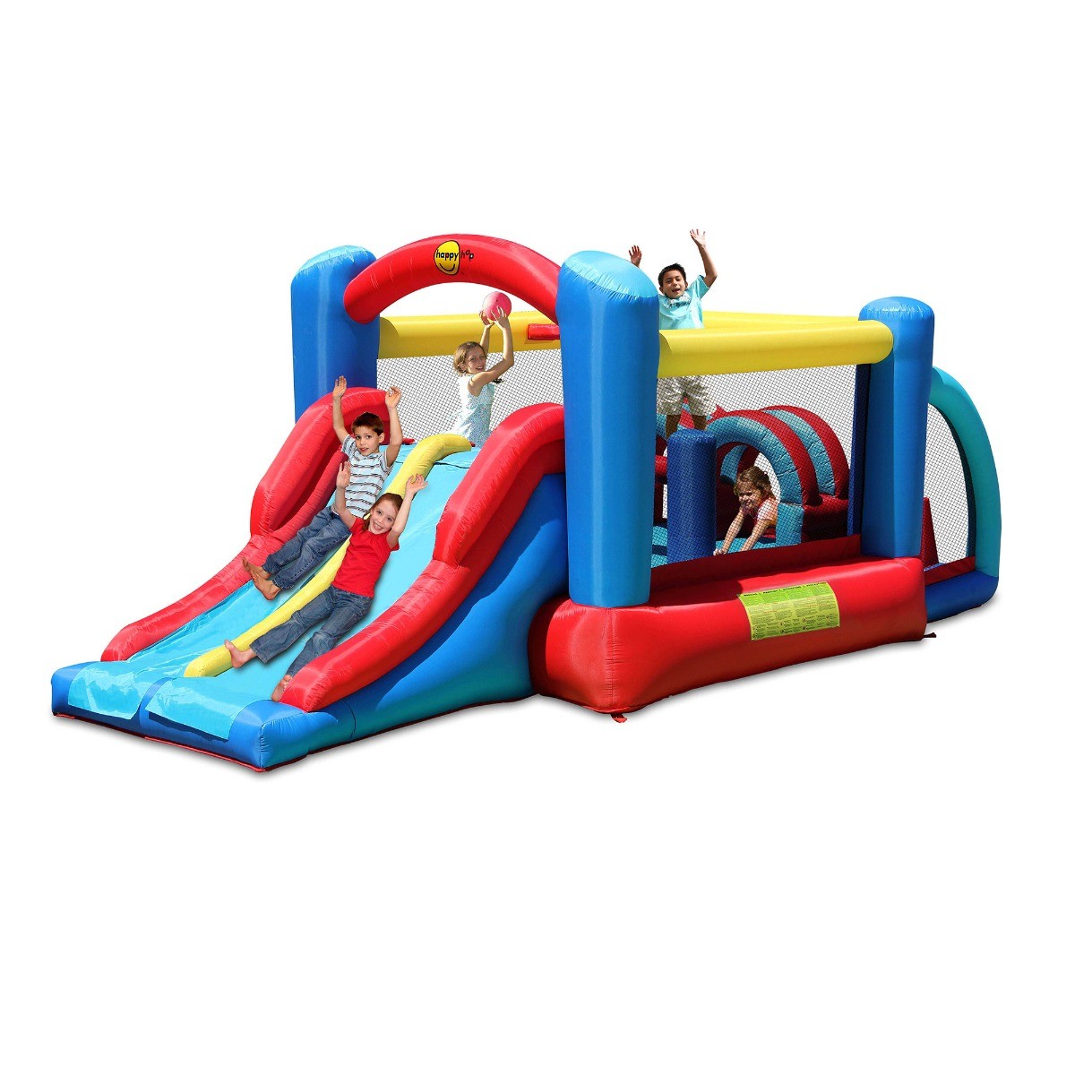 Kids can be entertained all day by the Happy Hop bouncer! Climb and slide using the inflatable climbing wall and slide to begin the adventure again.